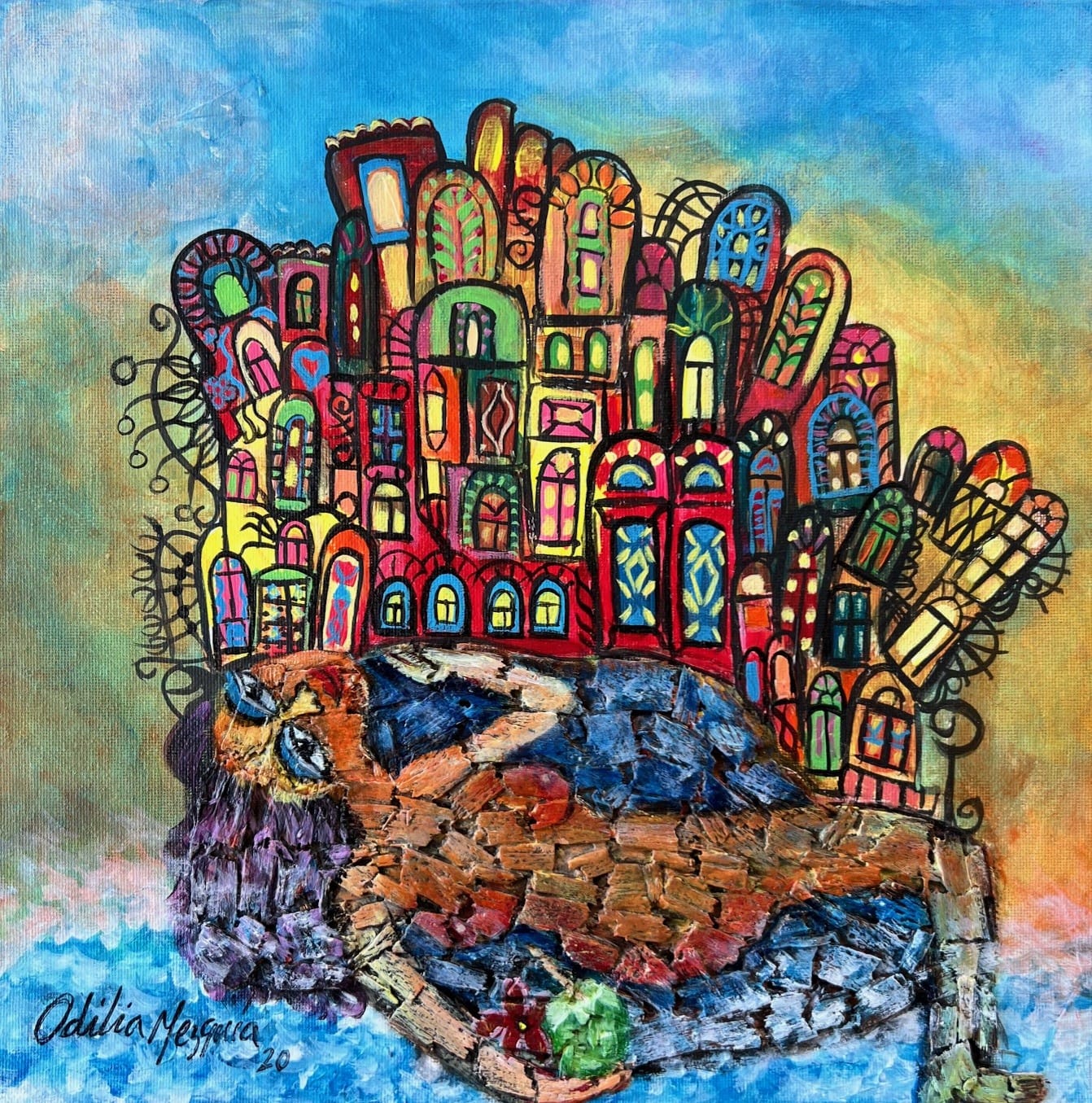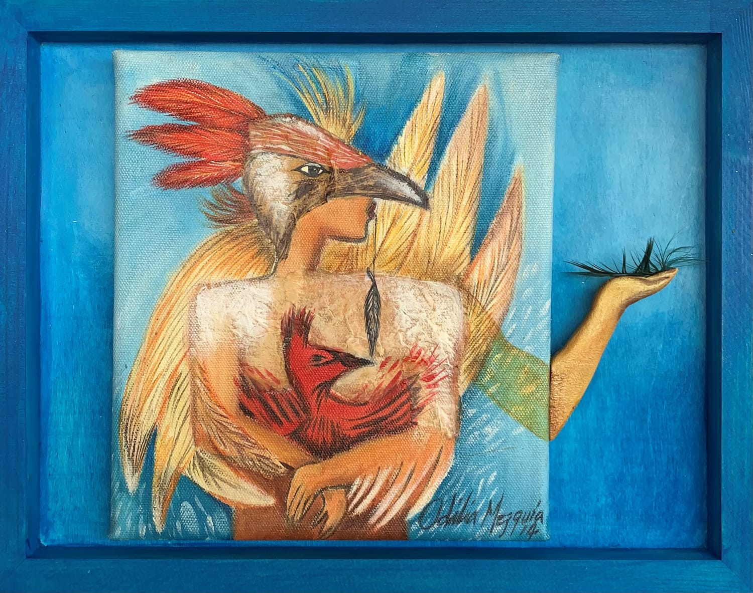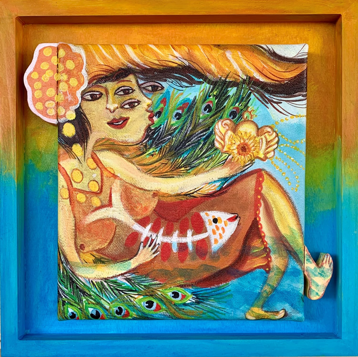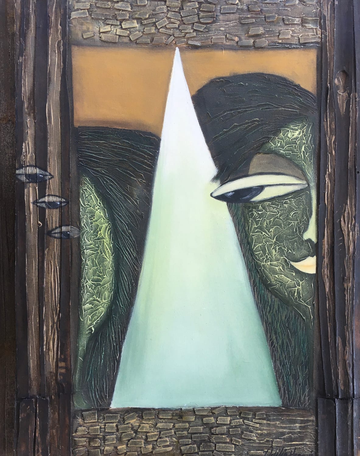 The wood in this painting is recycled, it was taken from an old piece of furniture belonging to a woman, so that her energy would flow with this work.