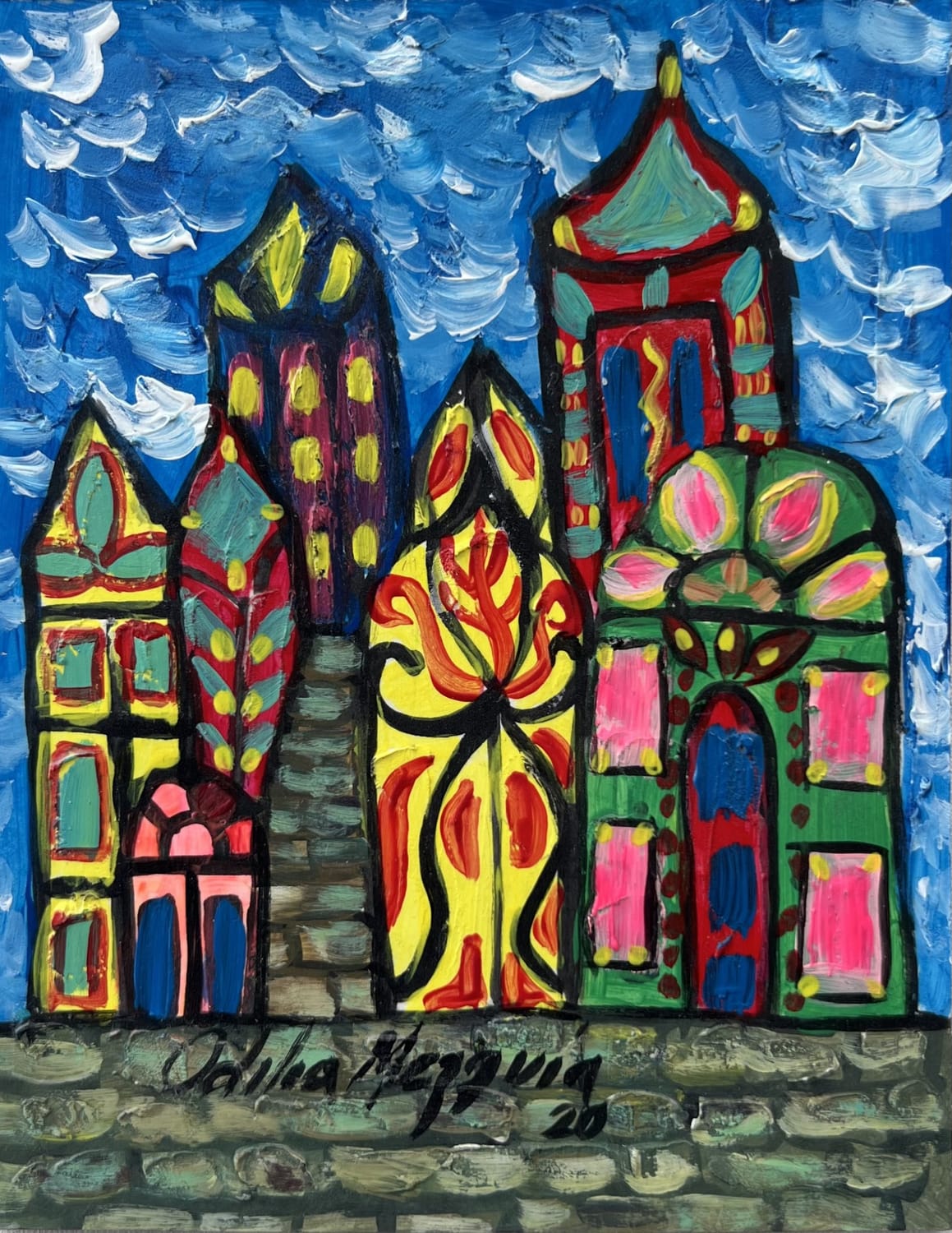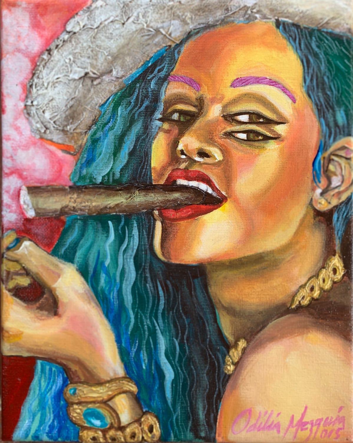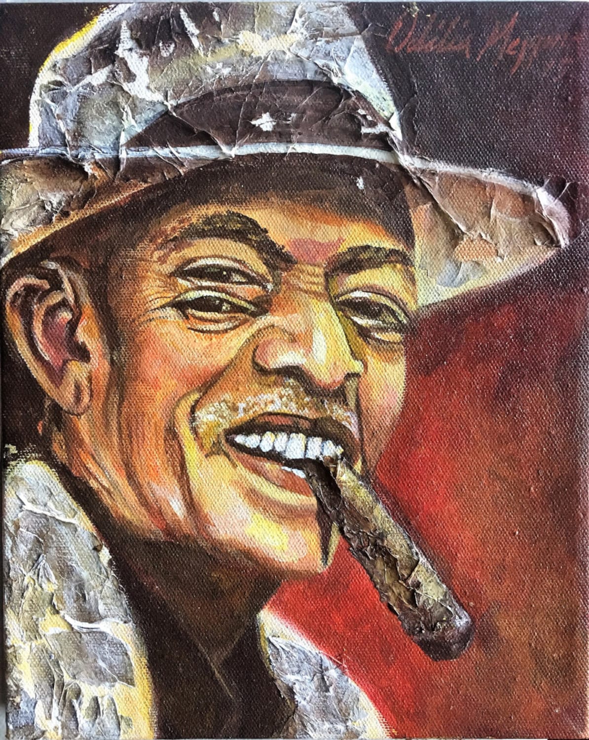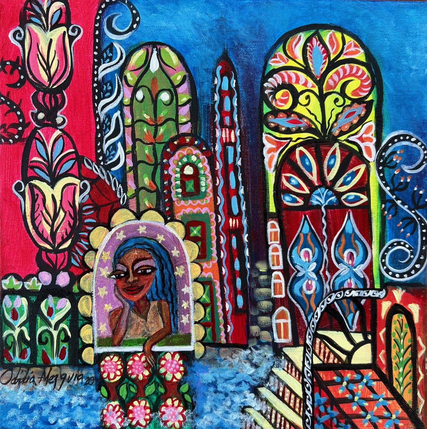 The wood in this painting is recycled, it was taken from an old piece of furniture belonging to a woman, so that her energy would flow with this work.